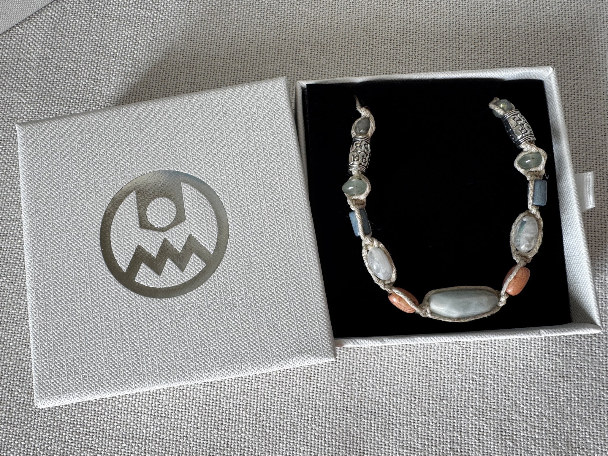 Handcrafted in natural-tone hemp, this piece carries the grounded spirit of the Viking way of life: courage, endurance, honor — softened by calming, ocean-inspired tones.