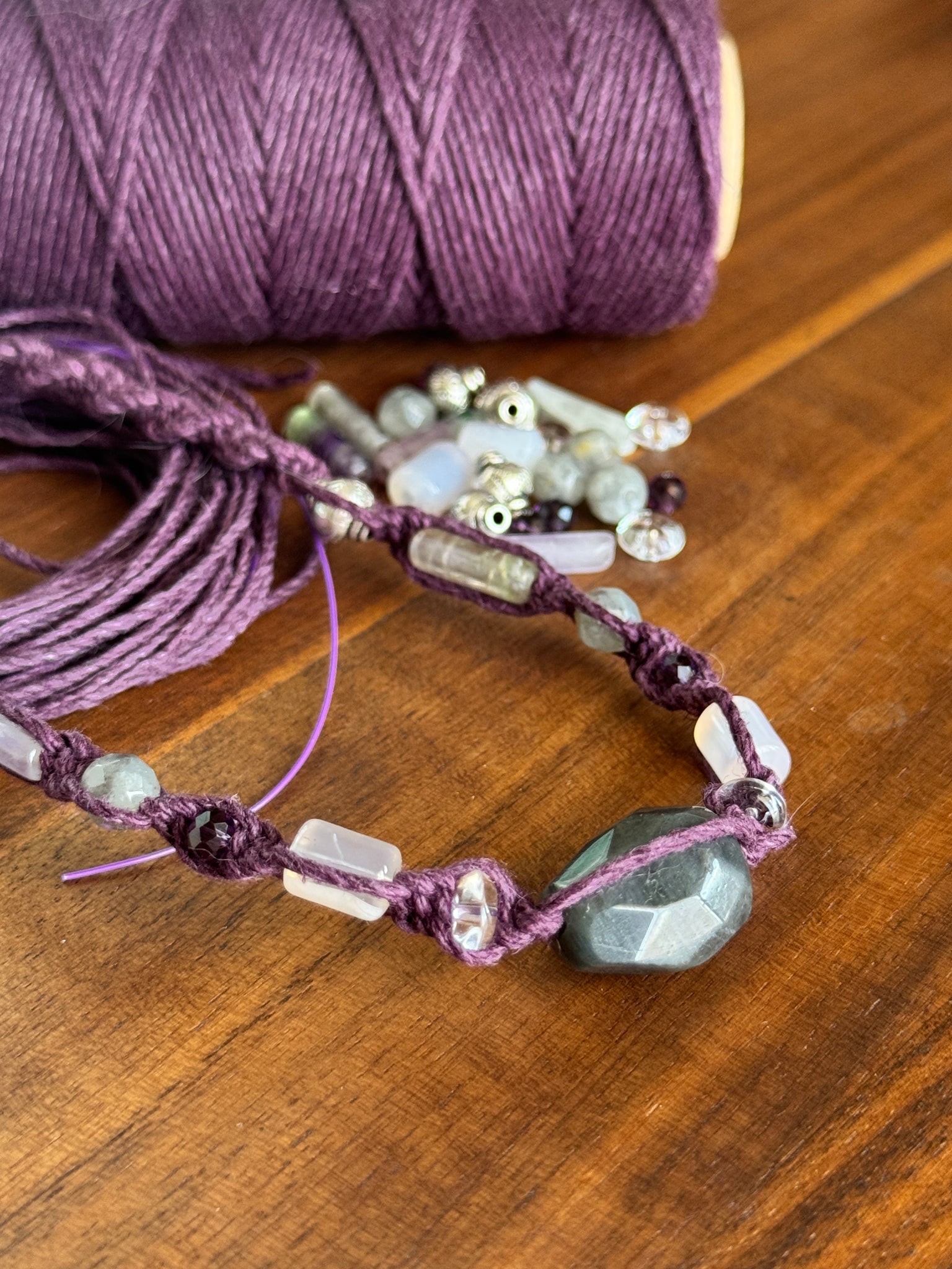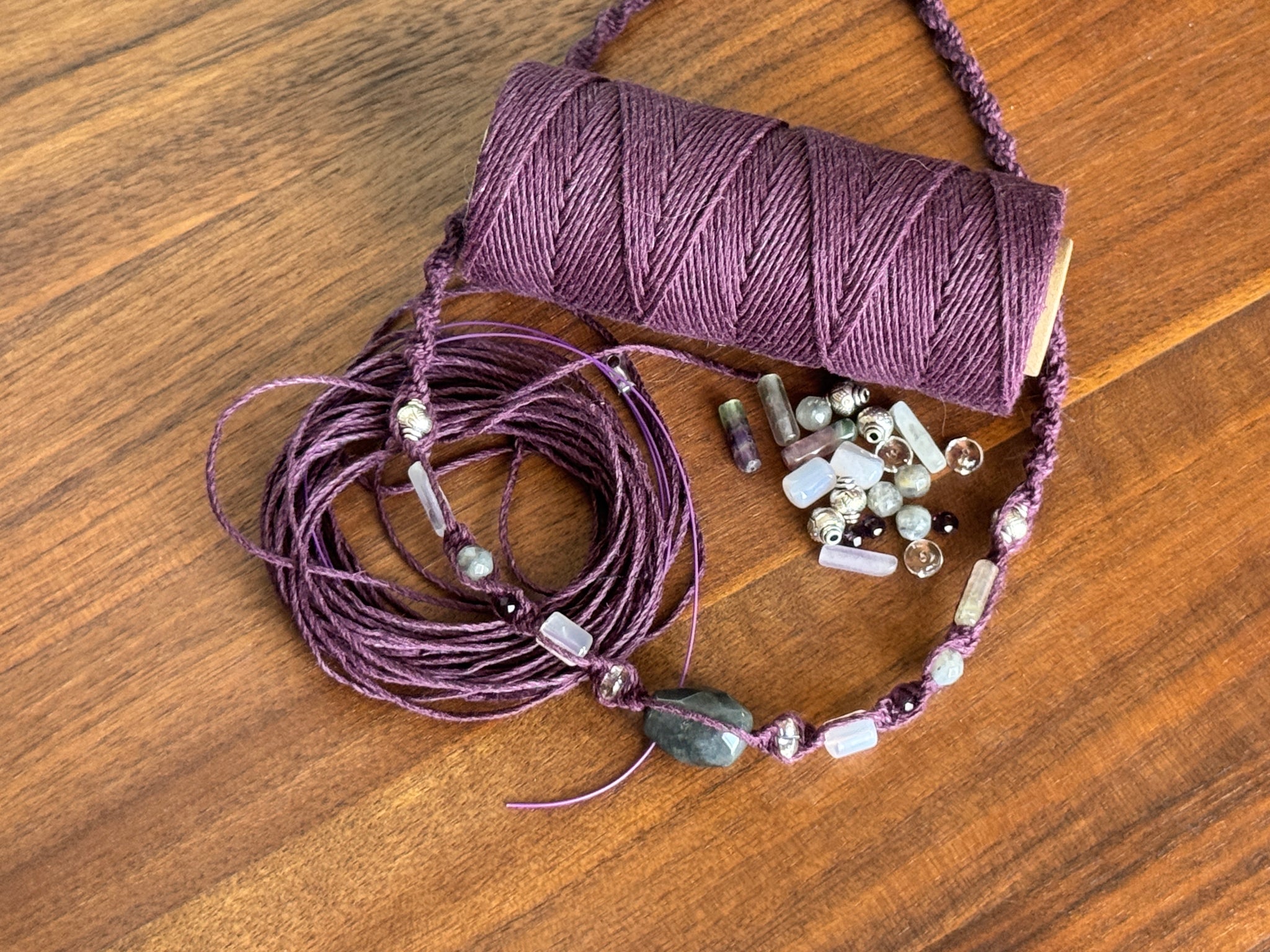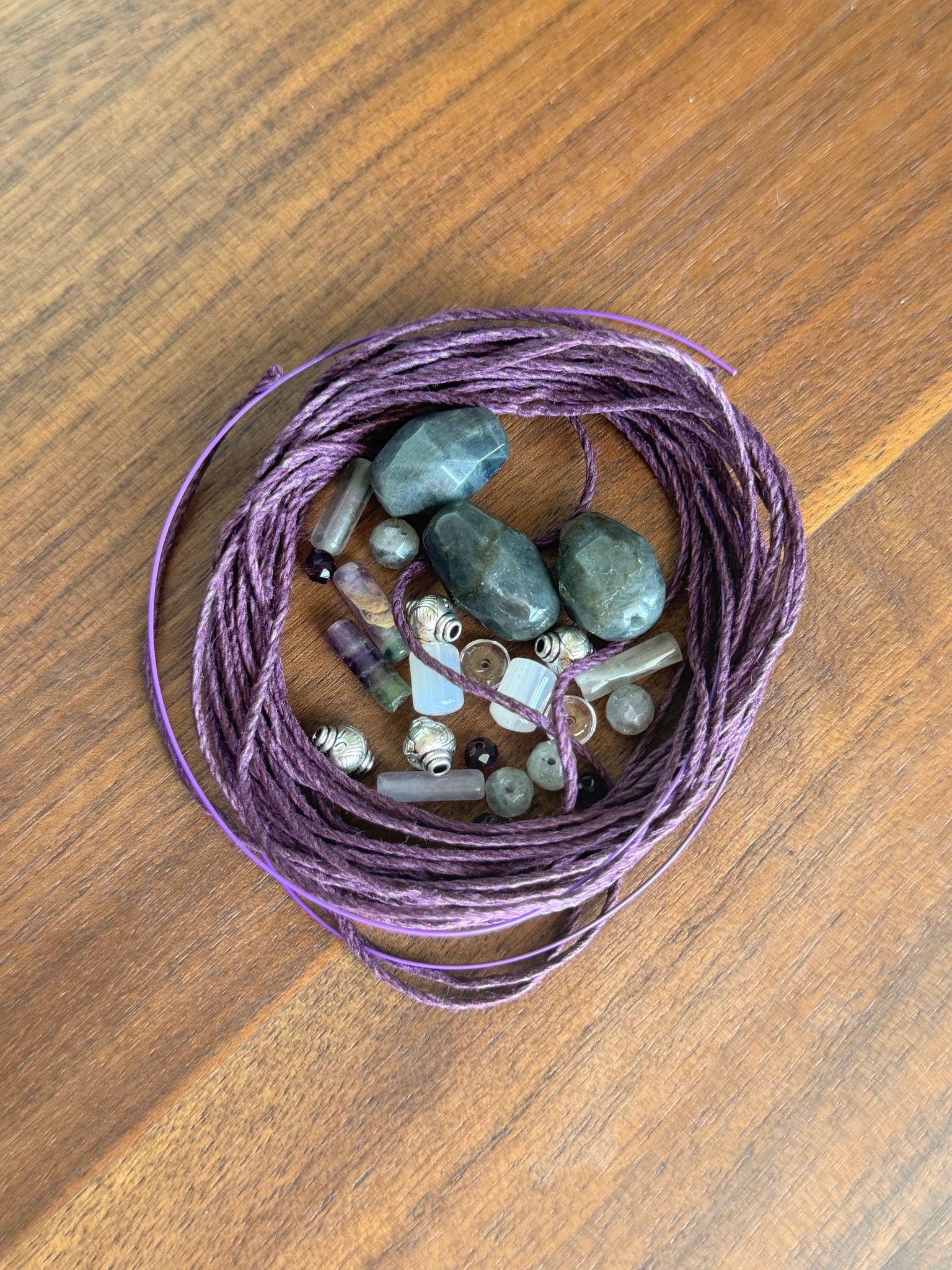 A piece for the soul thats learning to forgive and begin again. Handwoven with plum hemp, this necklace carries a labradorite pendant to guide transformation and self-trust, rose quartz for heart healing and compassion and fluorite to clear away old energy and bring balance back to your spirit.